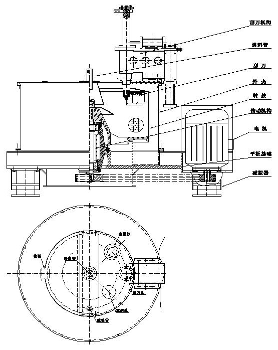 PGZ系列離心機是立式刮刀卸料自動過濾離心機,待分離的物料經進料管進入高速旋轉的離心機轉鼓內,在離心機力場的作用下,物料通過濾布(濾網)實現過濾,液相經出液管排出,固相則截留在轉鼓內,待轉鼓內濾餅達到機器規定的裝料量時,停止裝料,對濾餅進行洗滌,同時將洗滌液濾出,達到分離要求后,離心機低速運轉,刮刀裝置動作,將濾餅刮下,完成一次工作循環。
